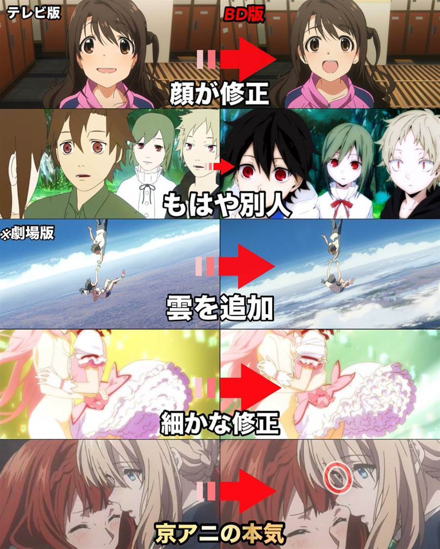 ブルーレイで修正されたアニメ作品