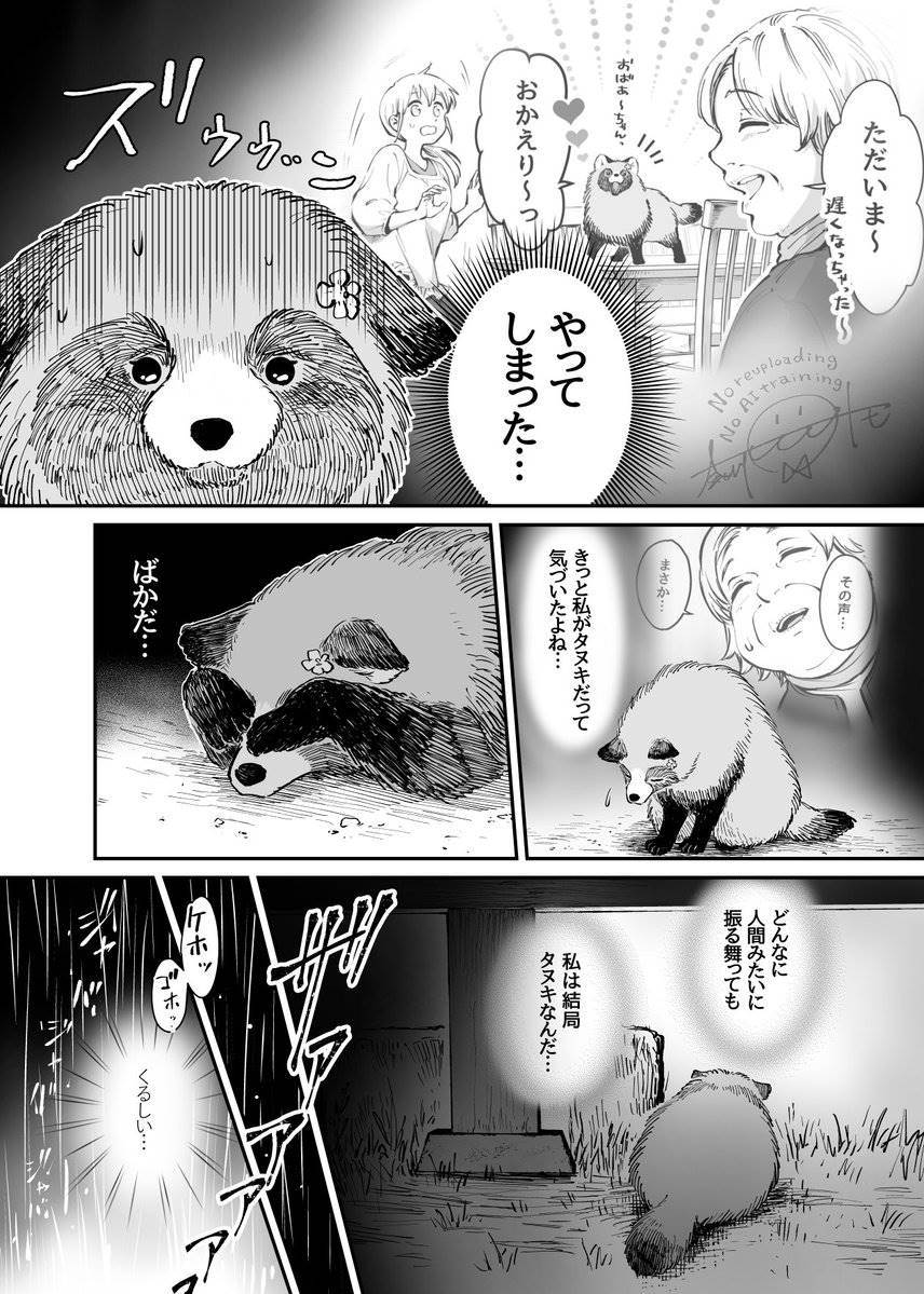 化けタヌキだとバレてしまった看板娘