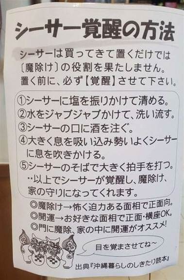 シーサーは買ってきて置くだけでは爆睡中らしいので意味ないらしい。 ワイんちのシーサー…もっと早く知りたかったわ…。