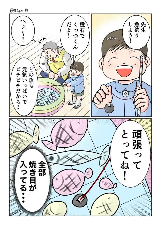 保育士実録 でこ先生 第358話 焼き魚釣り