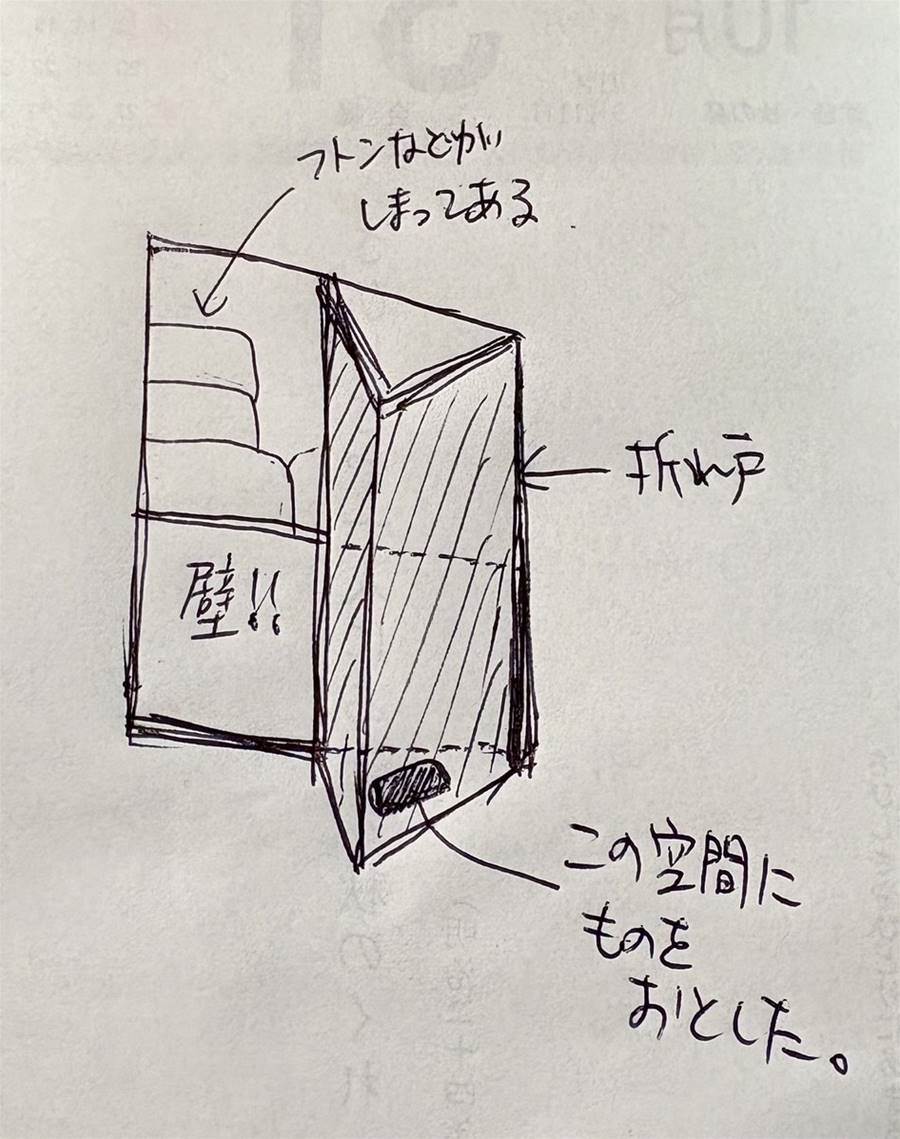 下手な図解で恐縮ですが、窮地を訴えたくて… 拾えない… 戸も閉まらない…
