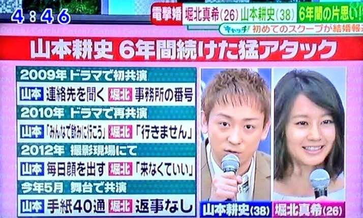 山本耕史と堀北真希、32歳が20歳の子に6年間ストーカーし続けて、最終的に結婚した稀有な例。良い子は絶対にマネしないでね。