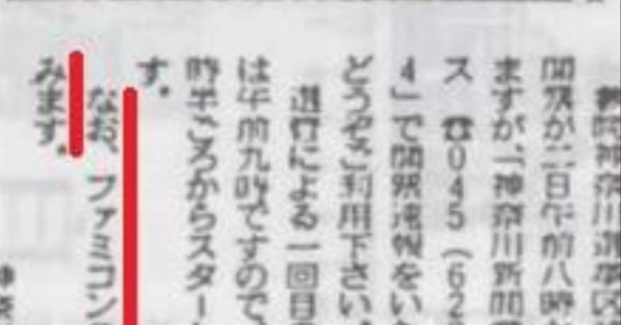 1987年の神奈川新聞を読んでたら、参院補選速報の文末に何の脈絡もなく「ファミコンショップ休業の知らせ」があって何これ謎過ぎるんだが。。。