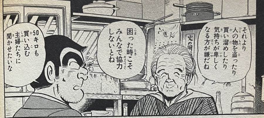 備蓄米に深夜から並んで取り合いやってるニュースを見てると、こち亀のこれはほんと金言。