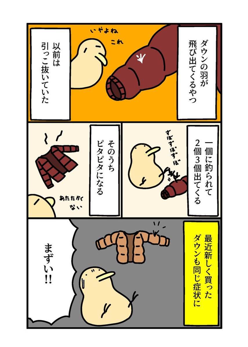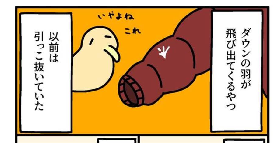 ダウンの羽が飛び出てくるやつ