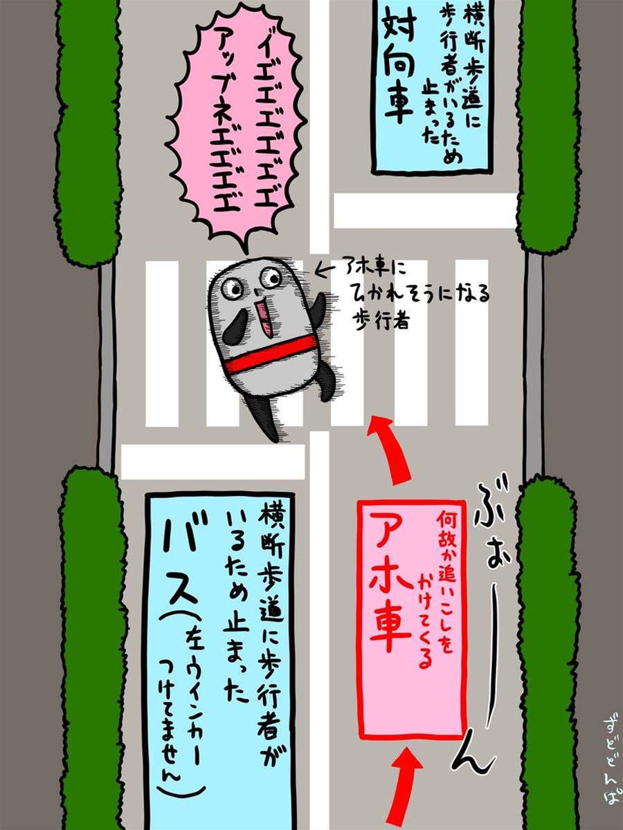 横断歩道に歩行者がいたので止まったら追い越しかけてくるアホ乗用車がたまにいるんだけどクソ危ないからやめてね