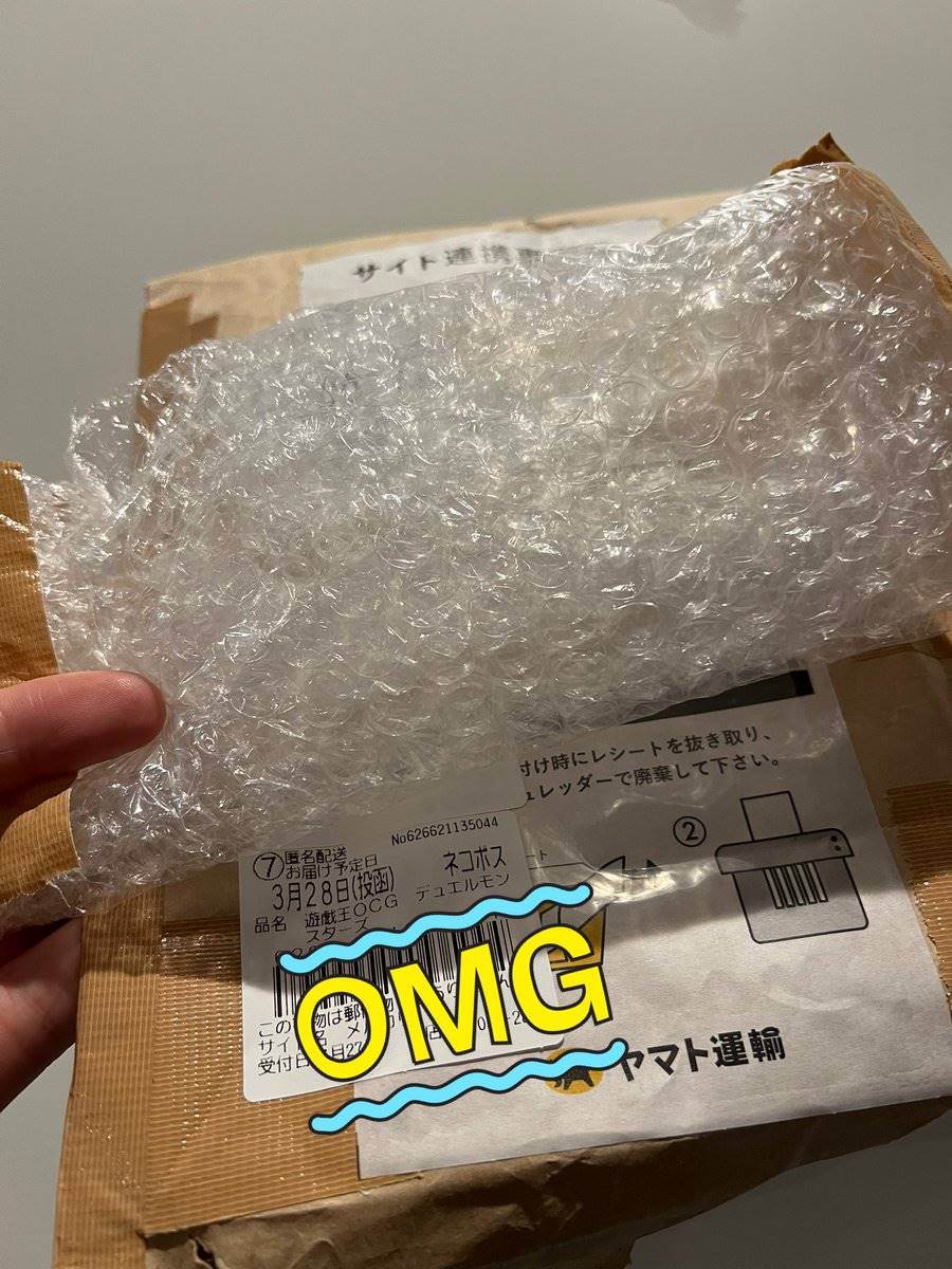 メルカリで遊戯王カード買ったら ネコポスの封筒に入ったプチプチだけが届いたんだけどw プチプチのガムテープ剥がして中見ても何もない