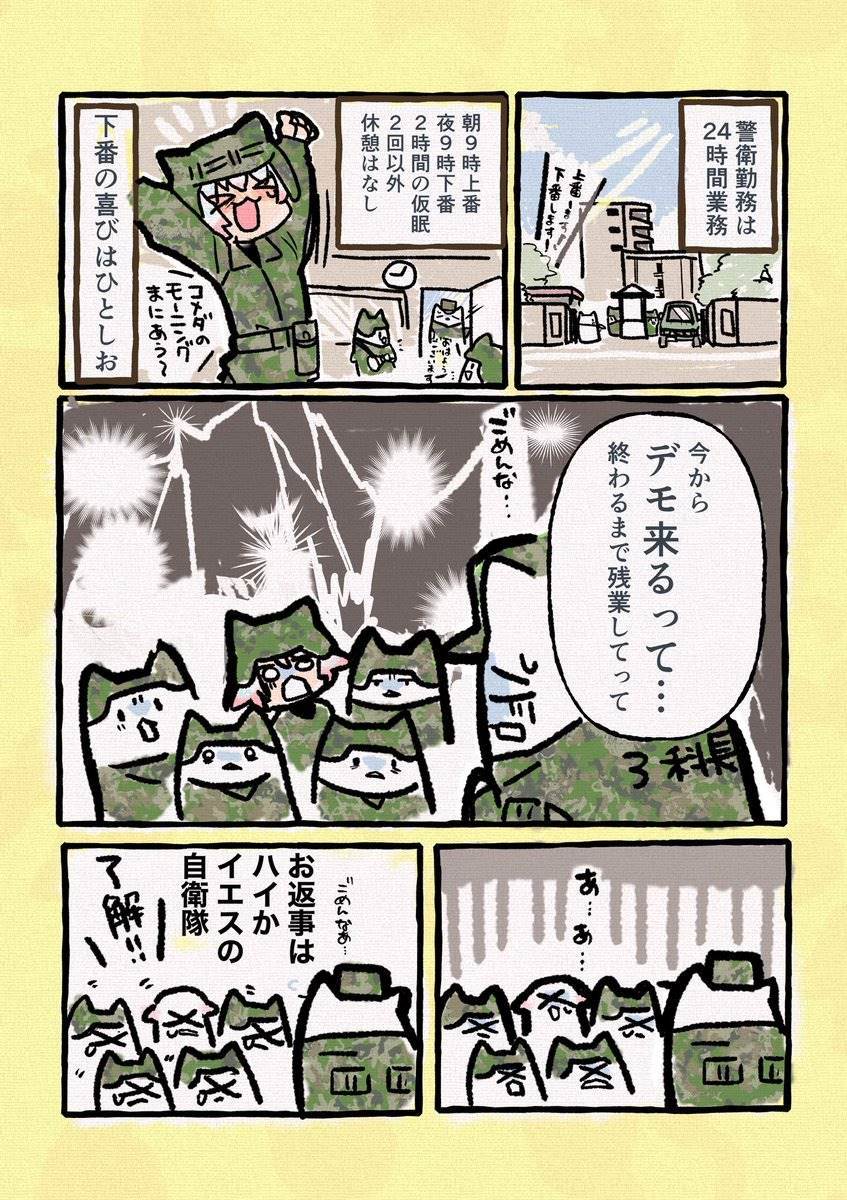 駐屯地にデモが来た時の漫画かな
